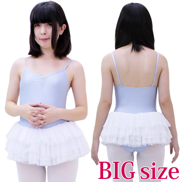 チュールスカート付きキャミソールレオタード 水色×白 BIG