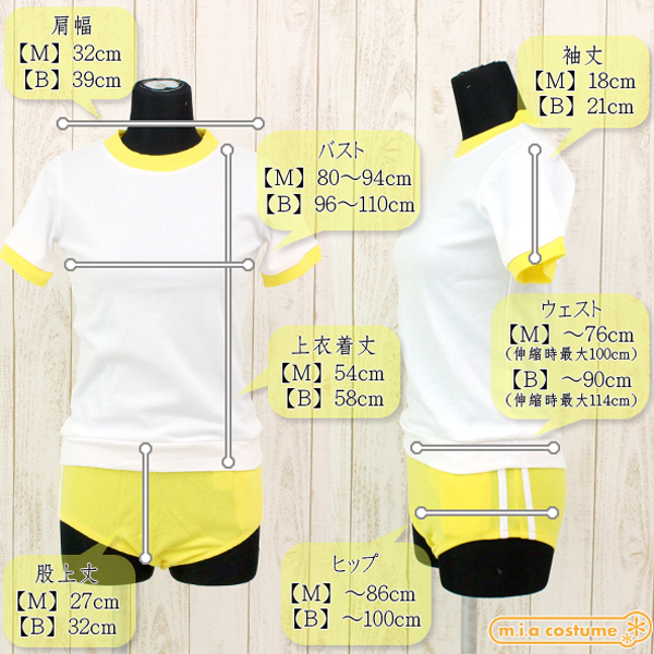 穿き心地の良いウエストゴムで仕立てたイエローのブルマに、トップスを合わせたシンプルな体操服コスプレです。