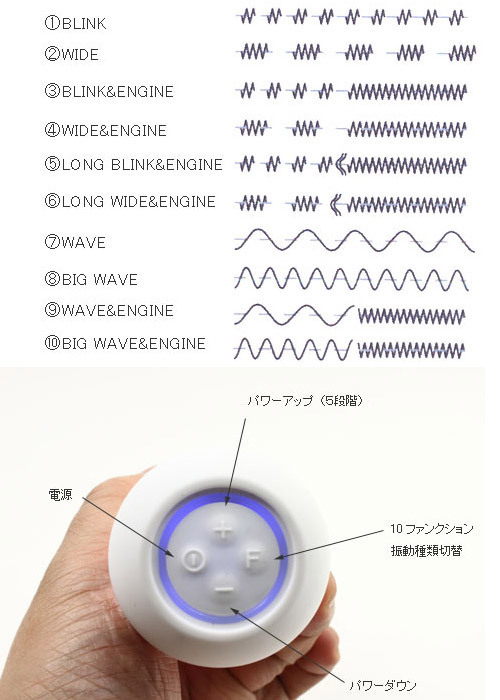 本体の底部の操作ボタンで、5段階のスピード調節と10段階のファンクション調節が可能。