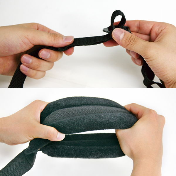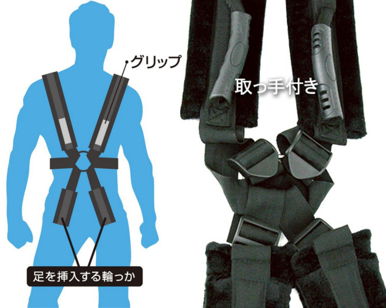 かなりの体力を必要とする駅弁ですが、これならラクラク!リュックを背負うように男性が装着し、輪に女性の足を通すだけ。