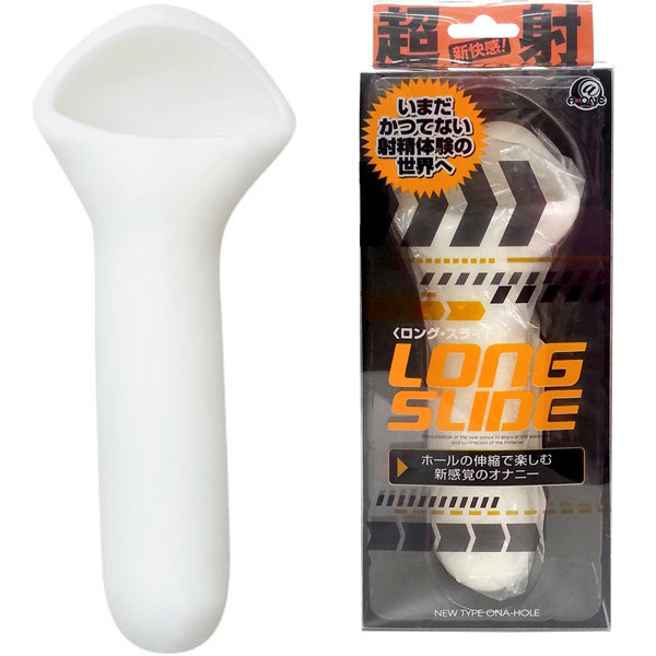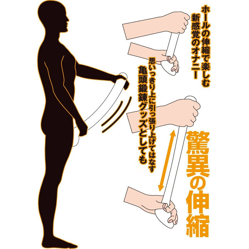 驚愕、メチャ伸び!亀頭の先から玉袋まで包み込んでスライドさせる、白いシリコンオナホール。