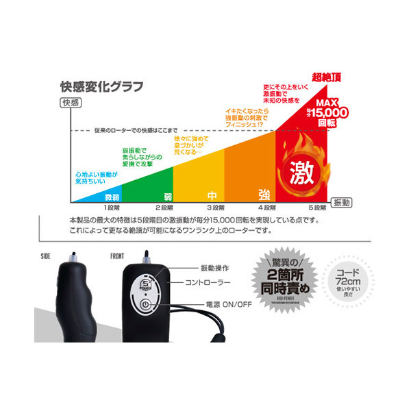 二ヶ所同時責めで一気に昇天!MAX15000回転の超絶振動「激」モードを搭載したダブルローターのビブラル。