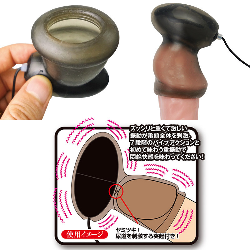 ローター装着部を亀頭先端に角度をつけて配置し、ダイレクトな超強力振動を実現!また、内部に尿道を刺激する突起を付けたことで、さらに刺激的になりました。