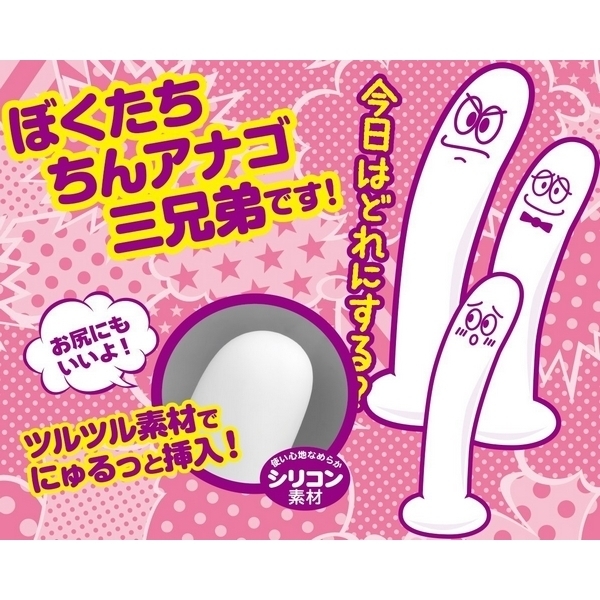 凹凸のないシンプルフォルムでアソコやアナルに無理なく挿入♪細身フォルムで初心者の方にもお勧めな「ちんアナゴ」三兄弟の三男ディルド。