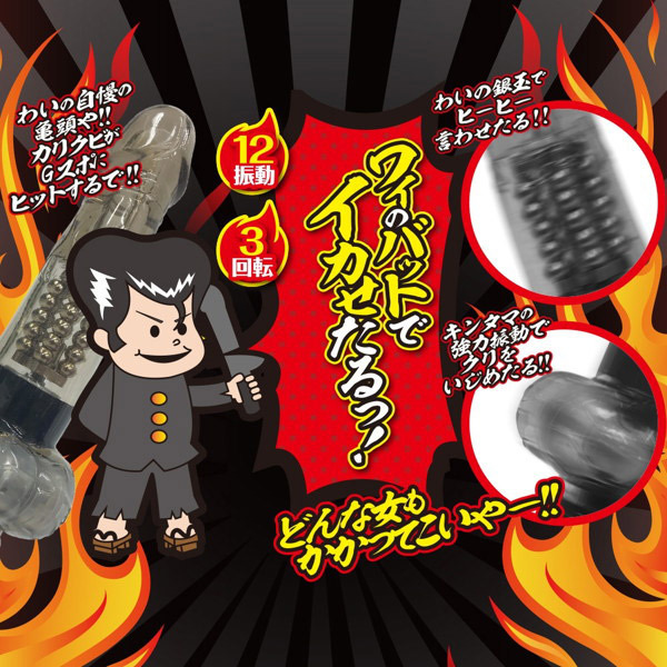 ワイのバットでイカせたるっ!パール&回転機能を搭載した二点責めバイブレーター。
