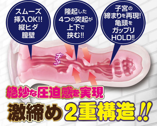 滑らかな挿入感と上下から挟み込まれながら亀頭をホールドされるような、外は硬め中は柔らかな激締め2重構造で絶妙な圧迫感を実現!抗菌&消臭力に優れたスーパーハイジェニックパウダーを配合した繰り返し衛生的に使える日本製のオナホです。