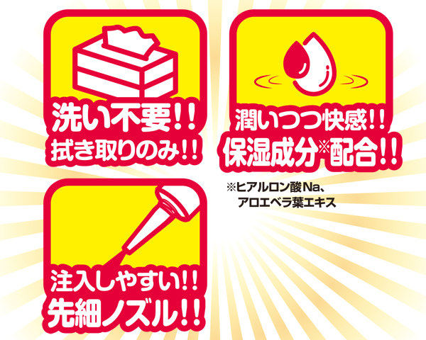ヒアルロン酸やアロエベラ葉エキスなど保湿成分配合!潤いを与えながら、ぬるりとした粘度でストロークをサポート♪使用後はサッとひと拭きで洗浄不要!注ぎやすい先細ノズルと手軽さで性活を快適にする洗い不要の万能ローション。