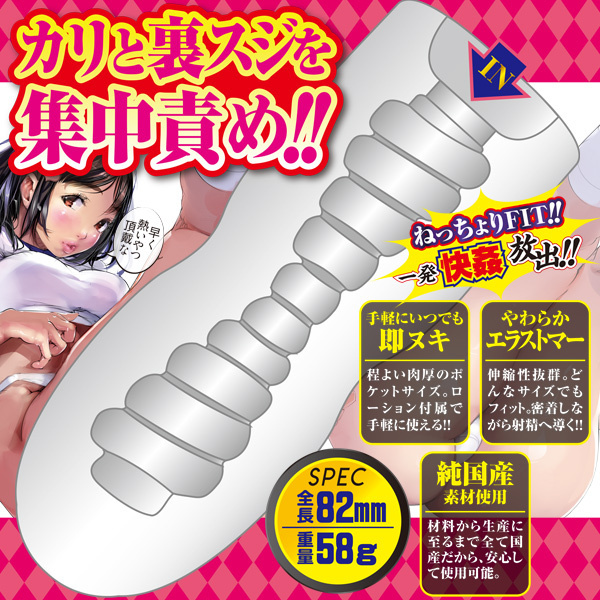 性欲女子とサクッとひとヌキ!エーワン×尾髭丹が送る最強ミニオナホシリーズ!真ん中辺でキュッと締め付けられる!ウネリが効いたミゾがアクセントになるミニサイズの非貫通オナホール!うねるらせん溝が、カリと裏スジを集中して責めてくれる!程よい肉厚のポケットサイズの、ローション付属なので手軽に使える!更に材料から生産に至るまですべて国産で安心。