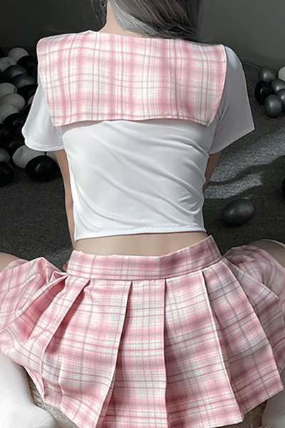 ストレッチ素材でボディにしっかりフィット!短めの丈が可愛らしいランジェリー感覚で制服コスが楽しめるセットです。