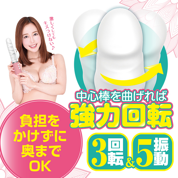 本体はやわらかぷにぷに素材だから、激しくピストンしても負担をかけずにプレイが出来ちゃう♪中心棒を曲げれば、内部で暴れるように超強力大大大回転!!一緒に振動させればカラダ全体で本気イキ出来る!!ぷにぷにだから、激しくしても痛くない。