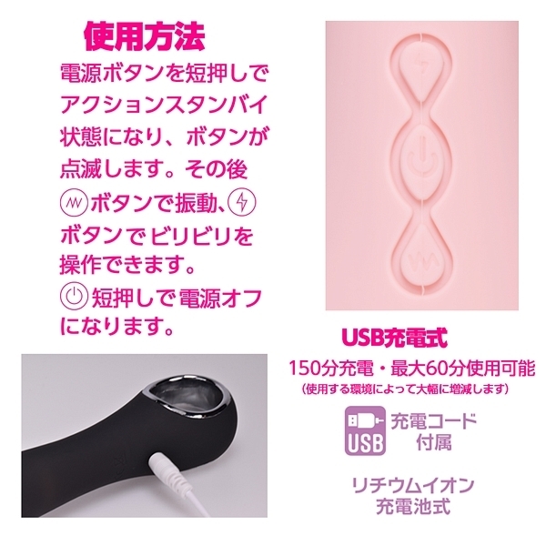 振動・ビリビリ刺激は個別に操作が可能で、ビリビリ7パターン。