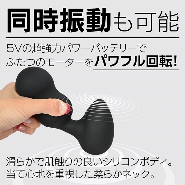 エッグ型ヘッドの左右に大小、サイズの違うモーターを配置!小ヘッドにはピンポイント用に微細振動モーターでポイント刺激を楽しめます。