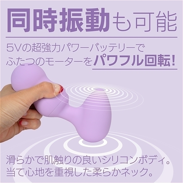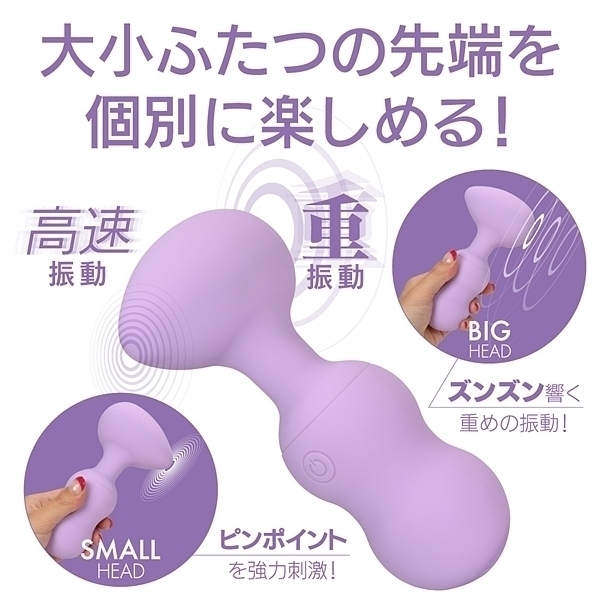 エッグ型ヘッドの左右に大小、サイズの違うモーターを配置!小ヘッドにはピンポイント用に微細振動モーターでポイント刺激を楽しめます。