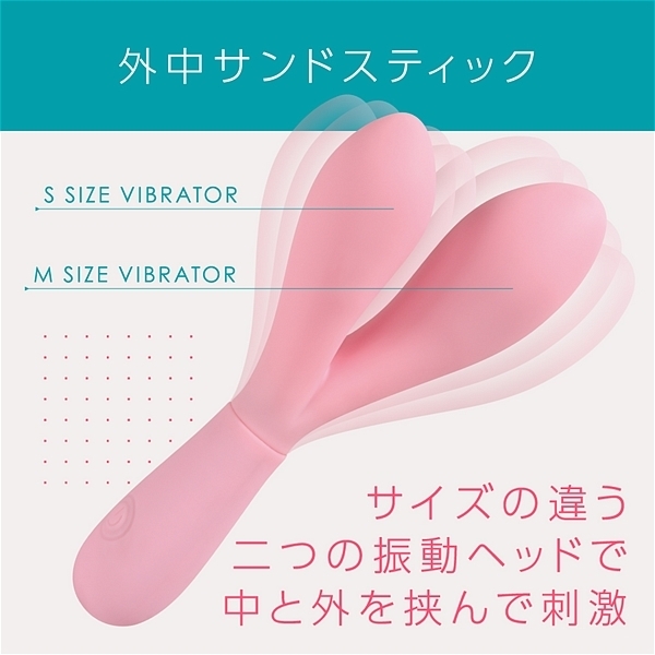 大小、サイズの異なる二つの挿入部が配置されたスティックバイブです。