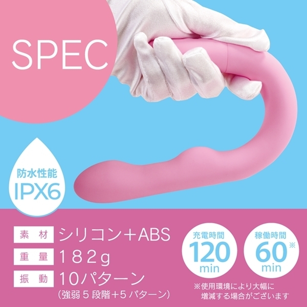 セルフケアに特化したU字型バイブレーターです♪ヘッド・Gポイント・外側への刺激、それぞれに専用モーターを搭載!3箇所を個別に操作できるので、好みに合わせた細かなカスタマイズが可能です♪振動は5段階の強弱調整と5種類のリズミカルなパターンを組み合わせた、計10種類を搭載!押し当てて楽しむ独自の形状が、今までにない使用感を提供します♪高性能モーターと高品質素材を組み合わせた、安心のジャパンクオリティ設計!オールシリコンボディは、しっとりとしたやさしい触り心地で、ストレスフリーな使い心地を実現しています♪約120分の充電で、最大約60分の連続使用が可能!(使用環境により変動します!)IPX6の防水仕様で、使用後も簡単に洗えて衛生的です♪