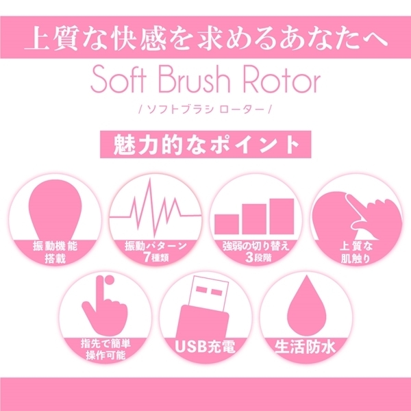 Soft Brush Rotorは柔かなブラシ状の先端が細かく震え優しい刺激を与えます。