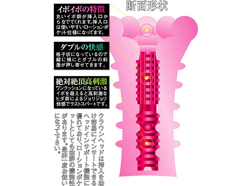 最奥直前にあるイボを超えると横ヒダが出現し、絶頂へ導く高刺激を送ります。