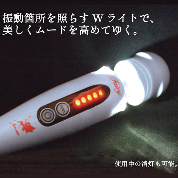 ●圧倒的な人気を誇る電マの最新作●全長26cmのフェアリーミニサイズ●フィットしやすいカーヴィヘッド●ボディの先端(2か所)にLEDを搭載●5段階強弱×5種振動=25パターン●電源ボタン:長押し→ON/OFF操作、短押し→強弱変更●波線ボタン:長押し→ライトON/OFF、短押し→パターン変更●ライト:点灯数で強弱&振動に対応した点滅でお知らせ●扱いやすい2.5mのロングコード●高性能モーターによる静音設計●45mm径アタッチメント使用可能。