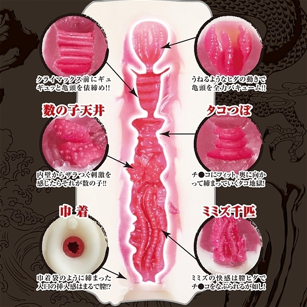 それが俵締め!Eイソギンチャクうねるようなヒダの動きと吸引する名器がイソギンチャクです!この6つの名器が一つに合体した!それが超越名器なのです!名器という名器を超越した最強名器がここに誕生!全ての名器が合体した最終名器システム!これこそが日本が誇る名器オナホです!