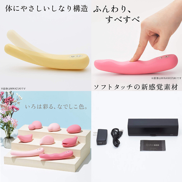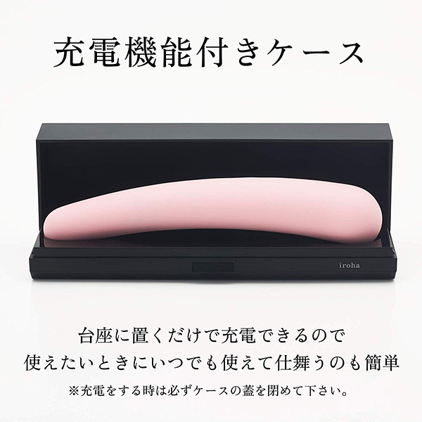 通常のものと比べて細くiroha特有のモチっとした柔らかな質感が、初めてでも挿入しやすいと好評♪身体にフィットする構造で気持ちの良い部分をしっかり刺激してくれる!人肌恋しい夜のお供に是非♪お風呂でも楽しめる防水設計、充電機能付きケース付属
