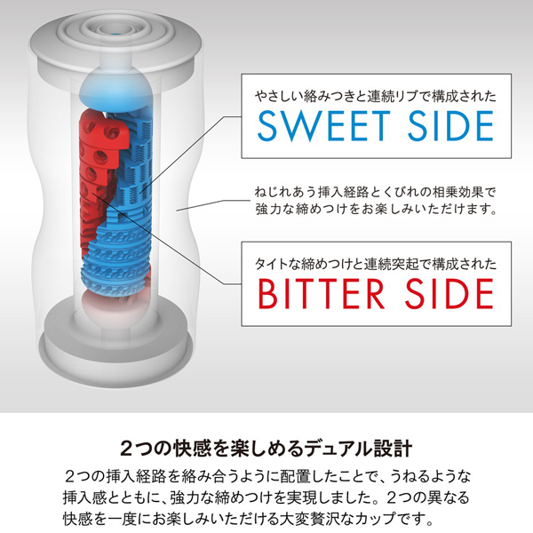 ハードな締め付けのビターサイドと優しく絡むスイートサイド。