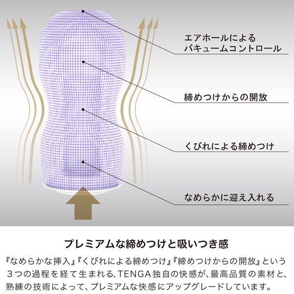優しく包みこまれる至極のソフト設計くびれ効果で、プレミアムな吸いつき感。