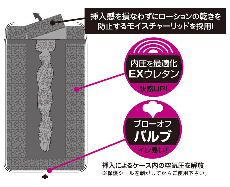 硬め素材で仕上げた内部には、無数のイボ突起を配置!高刺激がアナタに襲い掛かるります。