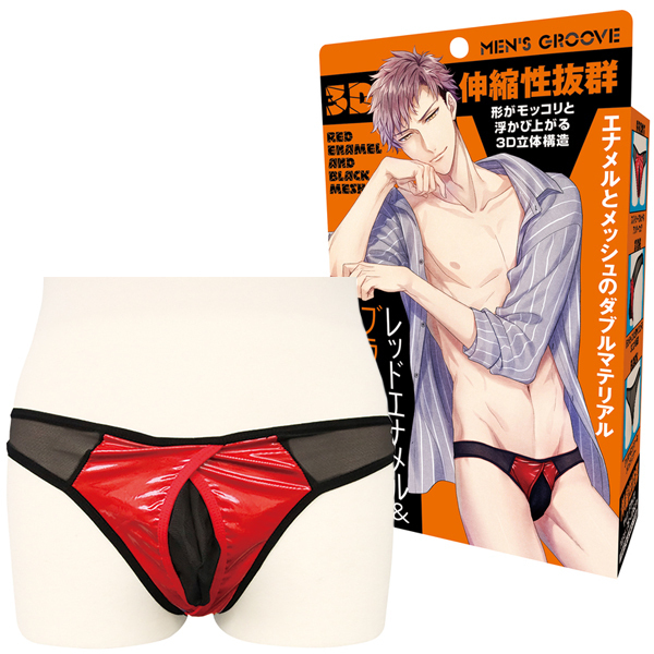 HOME > ランジェリー > メンズ ショーツ・ビキニ > レッドエナメル&ブラックメッシュ3Dショーツ