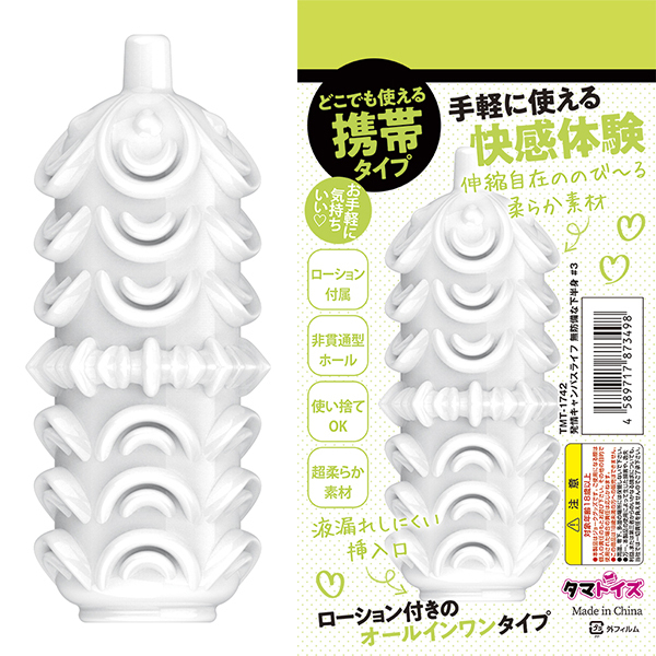 プリプリ高弾力タイプ、ローション付きのオールインワンタイプ、肉厚な柔らかシリコン使用で手軽に使える快感体験。