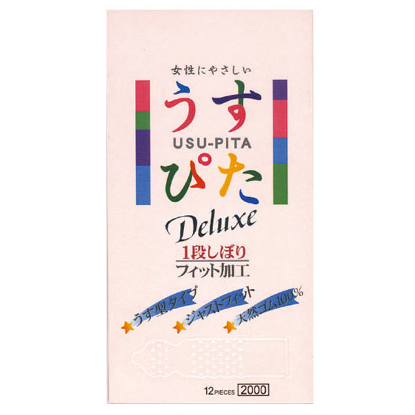 超薄型で柔らかいフィット感がとっても魅力的なピンクカラーのコンドーム「うすぴた2000」12個入。
