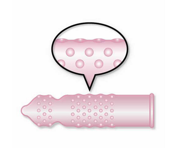 特殊一段緊縮絞りが脱落防止に効く、ツブ突起付きコンドームです。