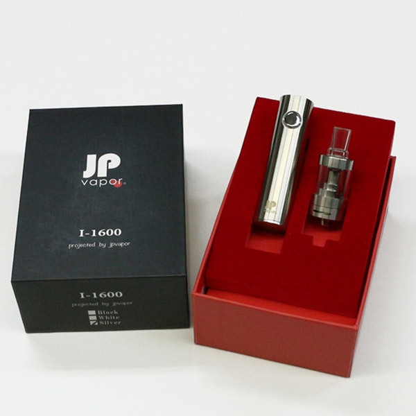 快適なVAPE(ベイプ)ライフをすぐに始められる特製BOX入りのフルセット!電子タバコのペン型ヴェポライザー「JPvapor I-1600 スターターキット シルバー」。