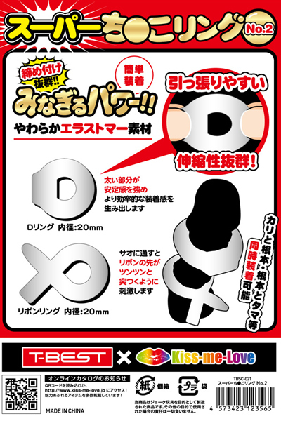 <T-BEST×KISS-ME-LOVE>夜もがんばリングで大人気のやわらかメンズリング「ち●こリング」が、スーパーになって新登場!今度のち●こリングは「特殊形状2個セット」!一部が肉太のDリングにクルッと輪を折ったリボンリングとをセットにしました!Dリングは一部分を肉太状にしたもので太い部分が安定感を強めてより効率的な装着感を生み出します。