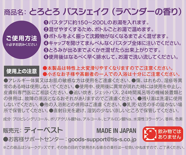 HOME > ソープグッズ > 入浴剤(ローション風呂) > とろとろ バスシェイク (ラベンダーの香り)