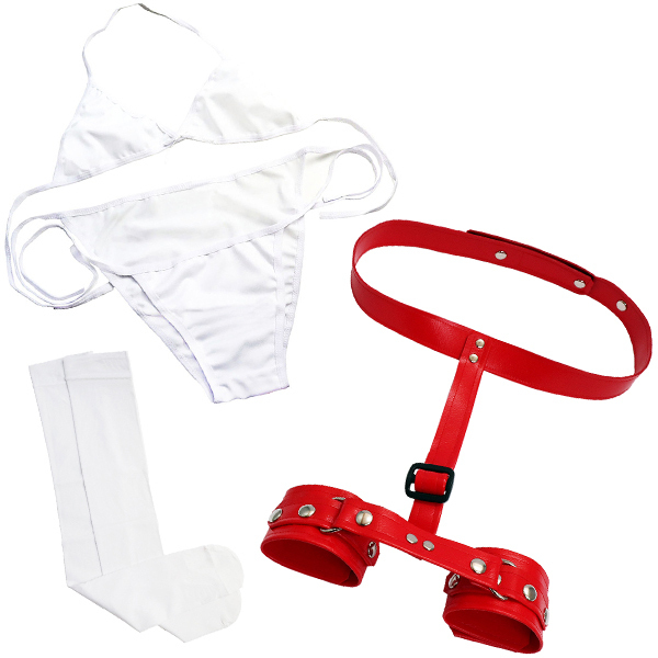 パッケージ:30.0×19.8×5.0cm 本体:フリーサイズ セット内容:枷、ブラ、ショーツ、ニーハイ 重量:189g