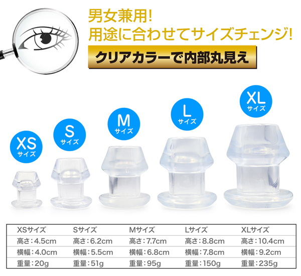 ビックサイズのアナタにピッタリ装着出来る!男女兼用拡張トンネルプラグ!内部穴360度見渡せる極上の光景幅広いプレーが可能な多用途プラグ柔軟性と形状保持力を備えた透明色の拡張アイテムです。