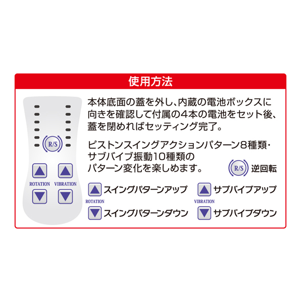 四重特殊ギミック刺激搭載の魔人バイブ!限界刺激!中も外も逃げ場無し!Gスポット付近で膨張圧刺激が気持ち良い♪螺旋パールにピストンスイングがポルチオをガッツリ刺激!ペロペロアクションサブバイブがクリトリス責め!ピストンアクションが8パターンで、貴方に合った刺激が必ず見つかる!カラーは女性に大人気の可愛いピンクカラー♪