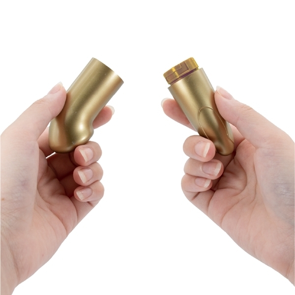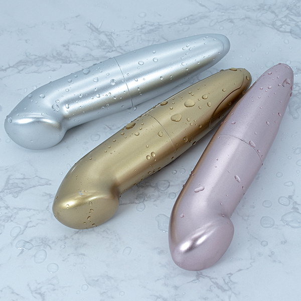 使い方は簡単でシンプルにヘッド部分を回転させるだけのON/OFF設計♪生活防水仕様で水で洗えて衛生的!こちらはメタルカラーのシャンパンとなります。