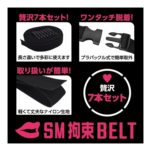 これひとつでSMプレイの拘束を簡単にする、ボンデージ用ベルト7本セット「SM拘束BELT」!SMプレイの核心となる「拘束」を、とってもお手軽にするSMアイテムです。