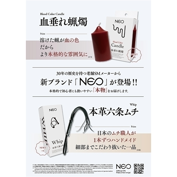 直径が5cmもあるので持ちやすく垂らしやすい30年の歴史を持つ老舗SMメーカーから新ブランド「NEO」が登場!本格的で初心者にも扱いやすい「本物」をお届けします。