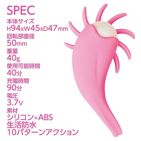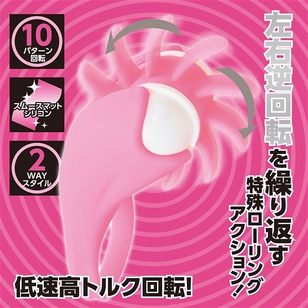 指にはめたり、リングとして着用してク○や乳首を刺激!リバース回転を繰り返す動きを含む10パターンアクション。