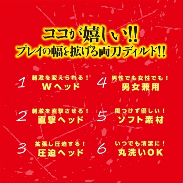撮影でのノウハウを惜しみなく注入した快楽間違いなしの2刀流双頭ディルドがついに発売!計算され尽くした太さと角度、柔らかいのに最高の挿入感!男性も女性も赤貝両刀ディルドで驚愕の快楽トリップを味わえ!さあ本性丸出しの悶絶快楽の世界へと!安心安全の日本製。
